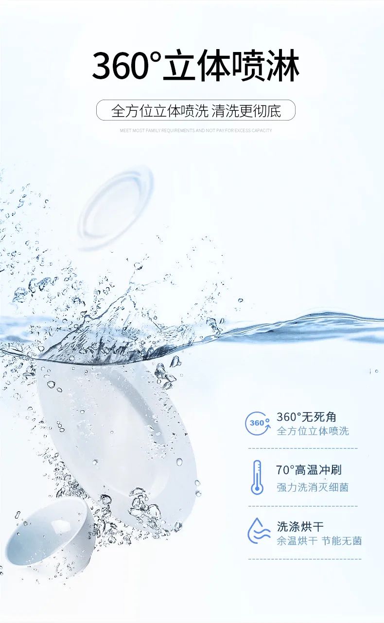 5D智淨係統,360°立體噴淋,全方位清洗更徹底。所以不要再說洗碗機洗得不幹淨啦,洗碗機不僅比手洗洗得幹淨,更能有效殺菌!